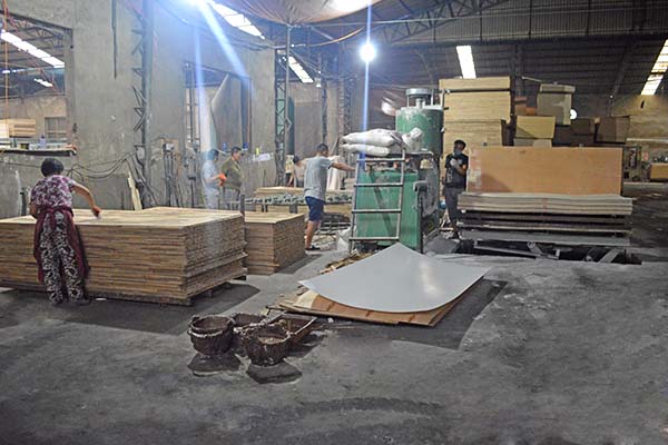 上圖顯示好色视频下载木業塗膠機工作生產線,好色先生视频板材塗膠現場。